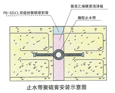 聚硫密封膠是以液態(tài)橡膠為主要原料,配以各種助劑及高分子材料,合成的新型防水密封材料,產(chǎn)品為雙組份膏狀物有明顯色差。A:B=10:1左右攪拌均勻后,2-3小時(shí)內(nèi)完成使用。 產(chǎn)品屬中性、無(wú)毒、無(wú)污染、防腐、防菌粘接力強(qiáng)、彈性、密封性好耐水、耐油、抗老化、使用時(shí)間長(zhǎng)。 廣泛應(yīng)用于地鐵、隧道、市政、機(jī)場(chǎng)跑道、公路橋梁等工程的混凝土伸縮縫、沉降縫、變形縫的嵌縫密封,特別適用于水廠、泳池、電站、污水處理廠等供排水工程。