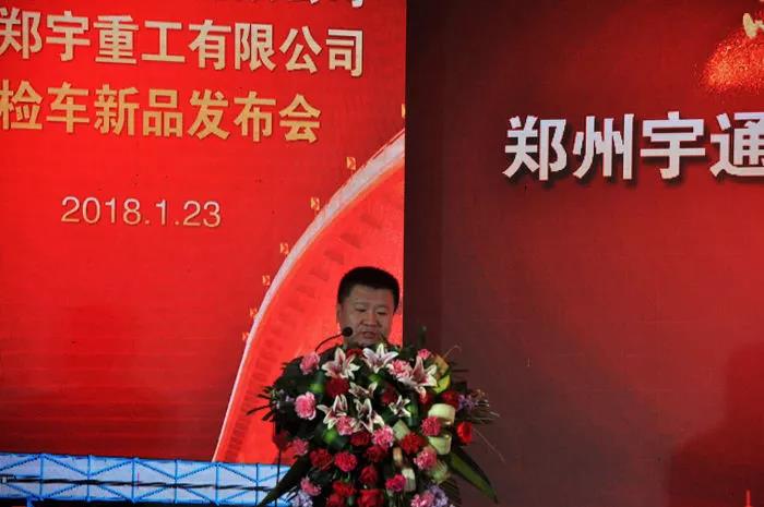 本次橋梁檢測車新品發(fā)布會于上午八時(shí)三十分準(zhǔn)時(shí)召開,鄭宇重工董事長、總經(jīng)理郭旭東先生致歡迎詞,郭總表示宇通自2007年開始涉足橋檢車,過去的十幾年一直穩(wěn)步發(fā)展,始終堅(jiān)持“以客戶為中心”的經(jīng)營理念來定位產(chǎn)品,把產(chǎn)品的品質(zhì)放在第一位,今天發(fā)布的新產(chǎn)品很多技術(shù)都是業(yè)內(nèi)首次使用,必將給大家?guī)韺驒z車的全新理解和認(rèn)識。